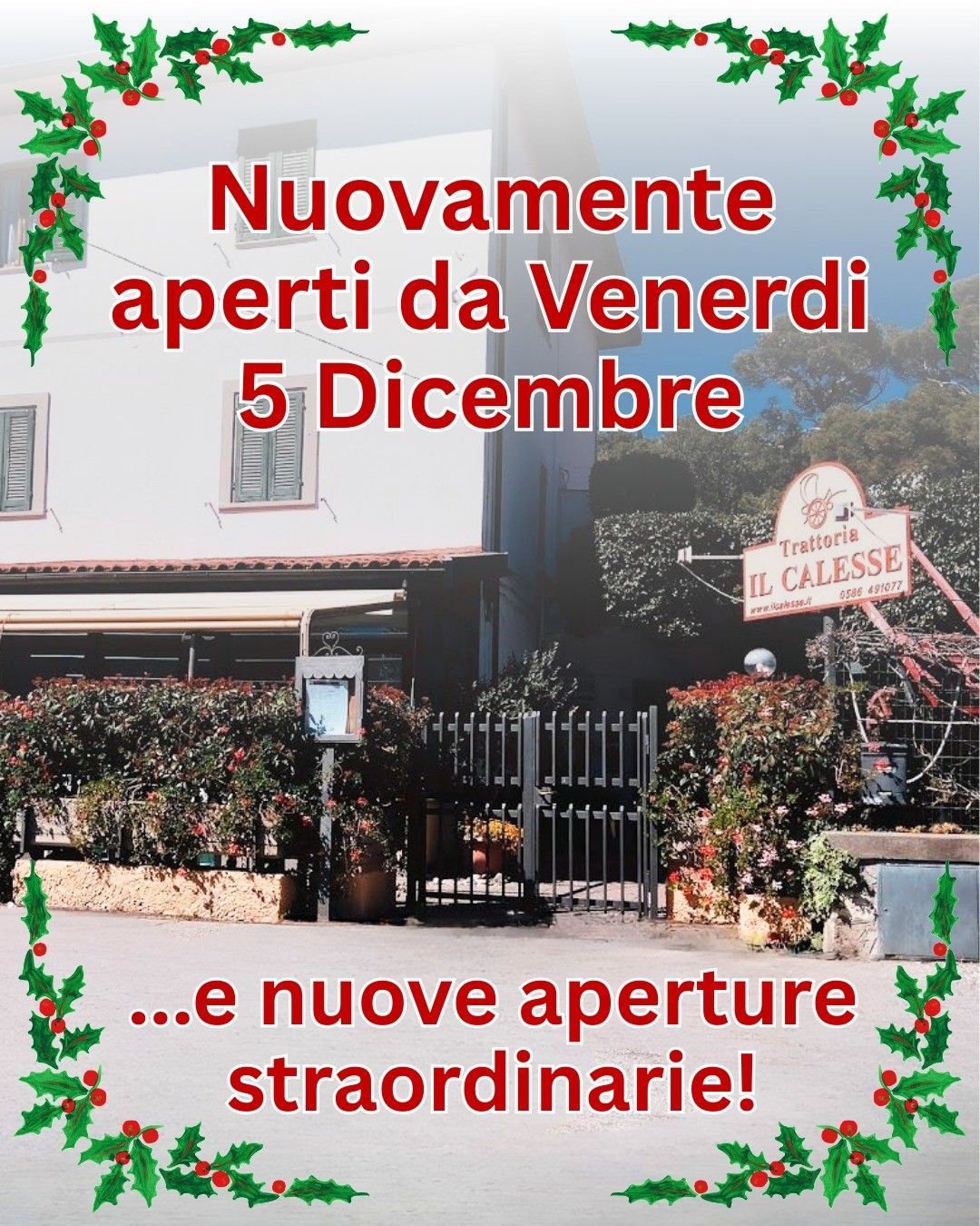 Riapriamo Venerdì 5 Dicembre con questi orari: