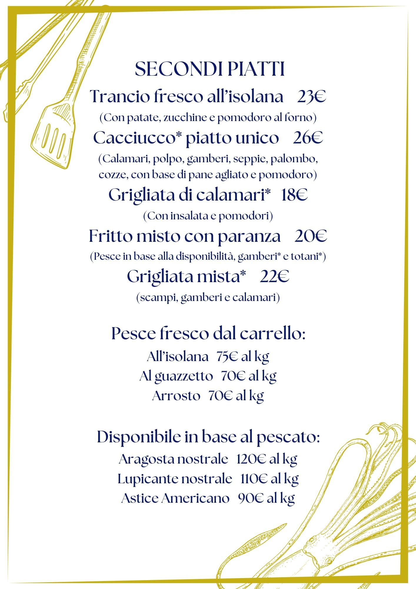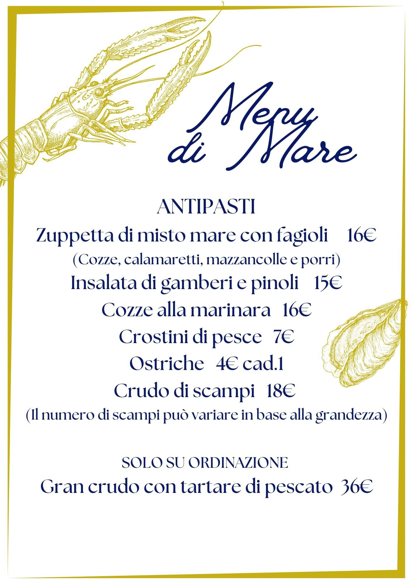 Dagli antipasti di terra alle crudités di mare, dai primi di pesce ai dolci della tradizione, ogni portata è curata nel minimo dettaglio, per a assicurarti qualità e gusto ad ogni boccone.
